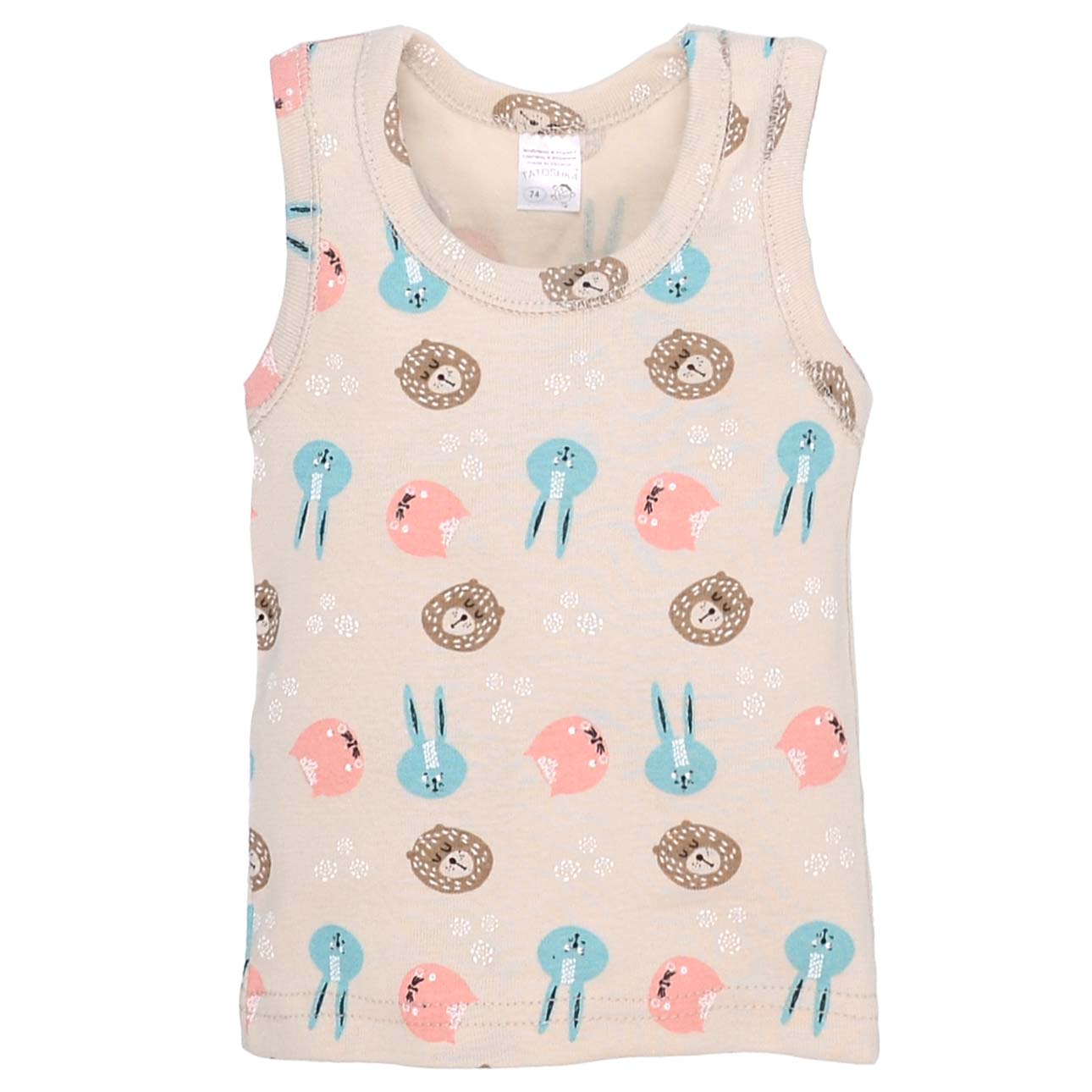Дитяча майка для дівчинки, р.86-122 см, рібана, бежева з принтом