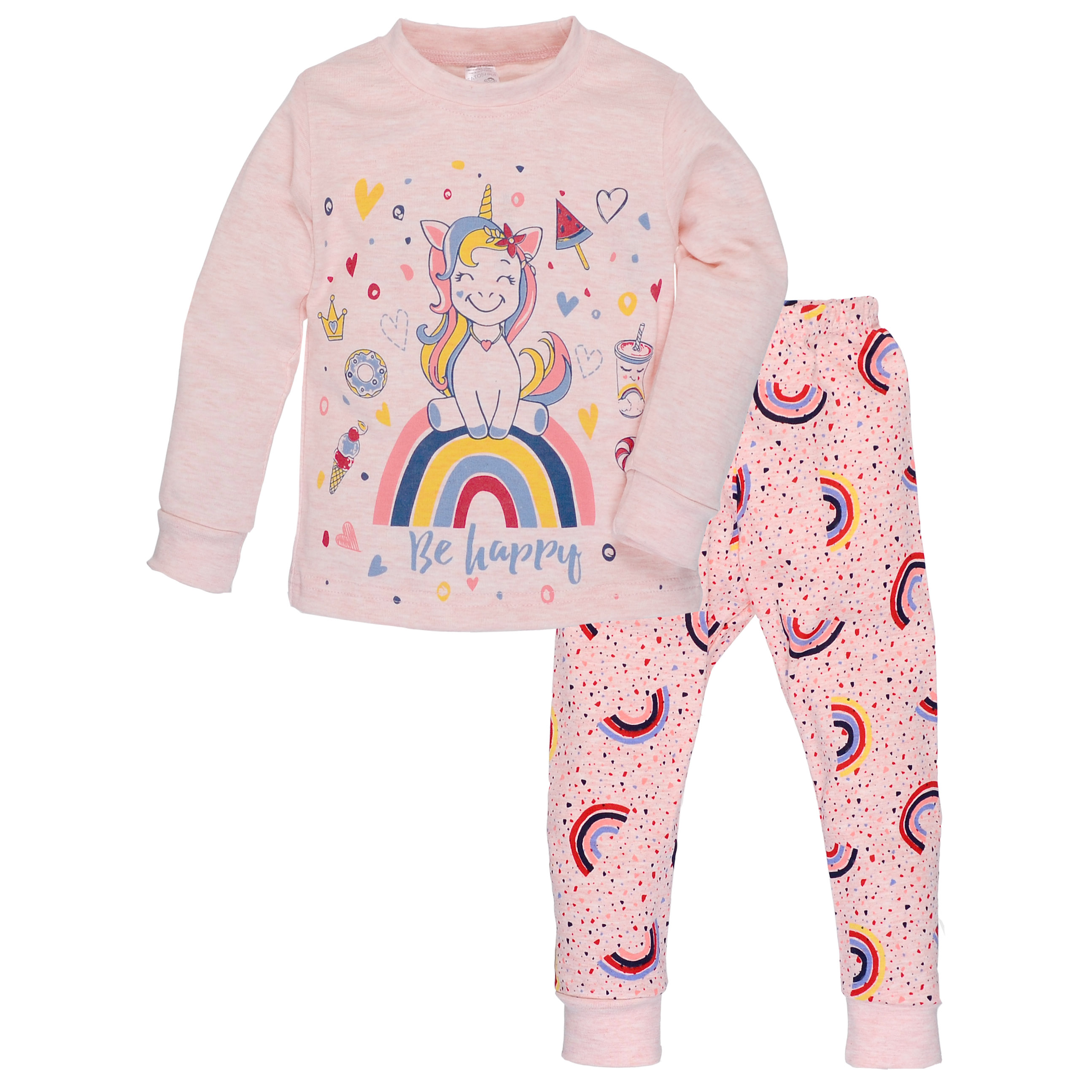 Дитяча піжама для дівчинки, р.86-164 см,рібана, рожева з принтом