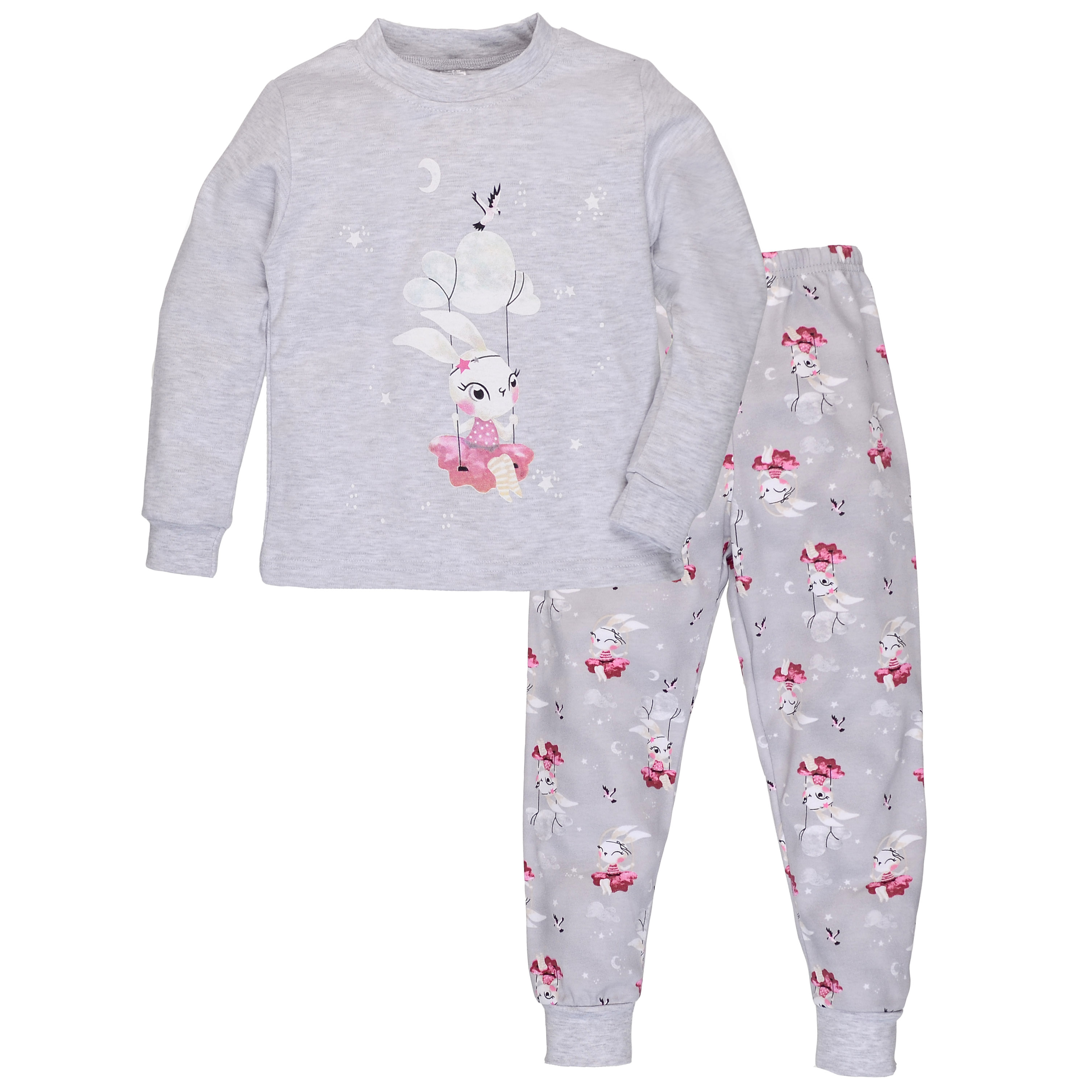 Дитяча піжама для дівчинки, р.92-158 см, інтерлок , сірий меланж з принтом