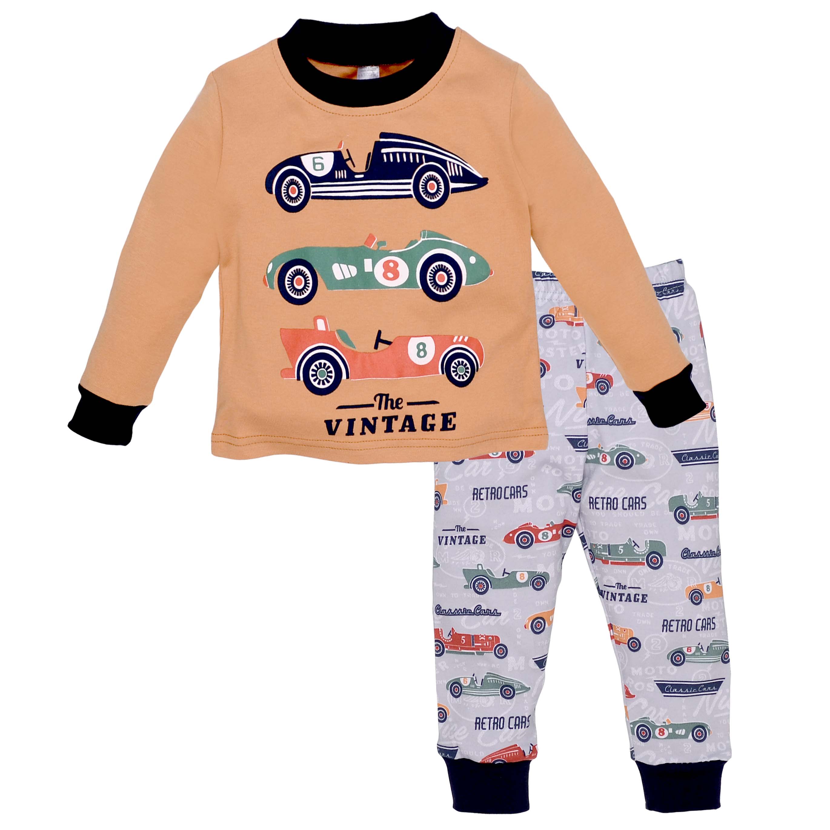 Дитяча піжама для хлопчика, р.80-128 см, інтерлок, бежева з принтом