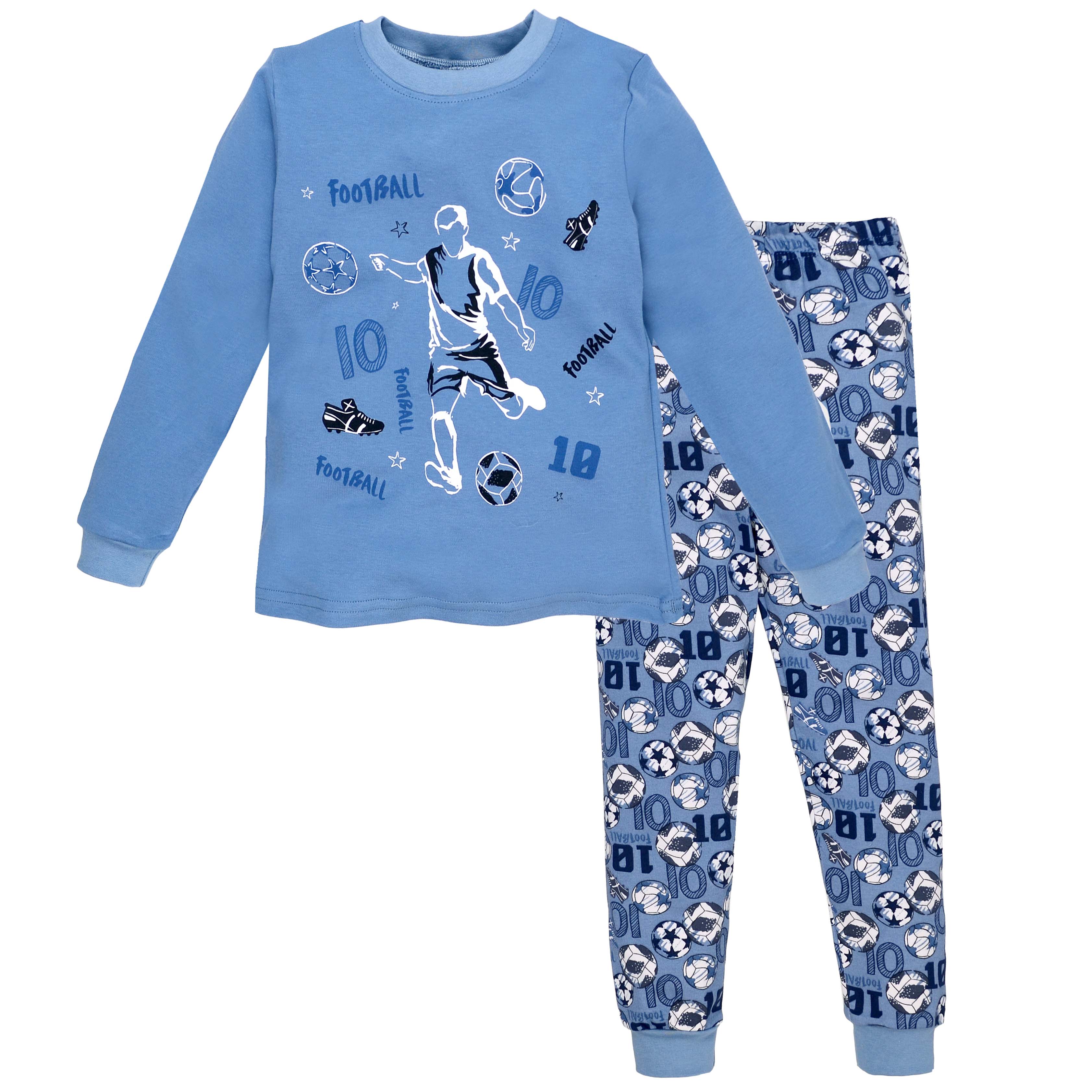 Дитяча піжама для хлопчика, р.116-164 см, інтерлок, блакитна з принтом