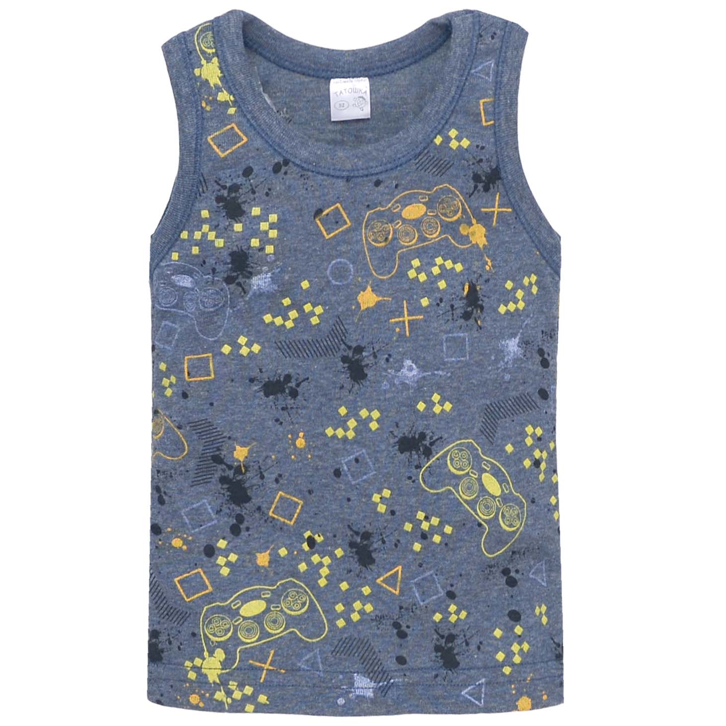 Дитяча майка для хлопчика, р.92-134 см, рібана, синя з принтом