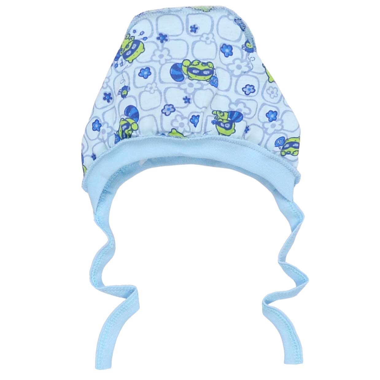 Дитячий чепчик для хлопчика, кулір, блакитний з принтом