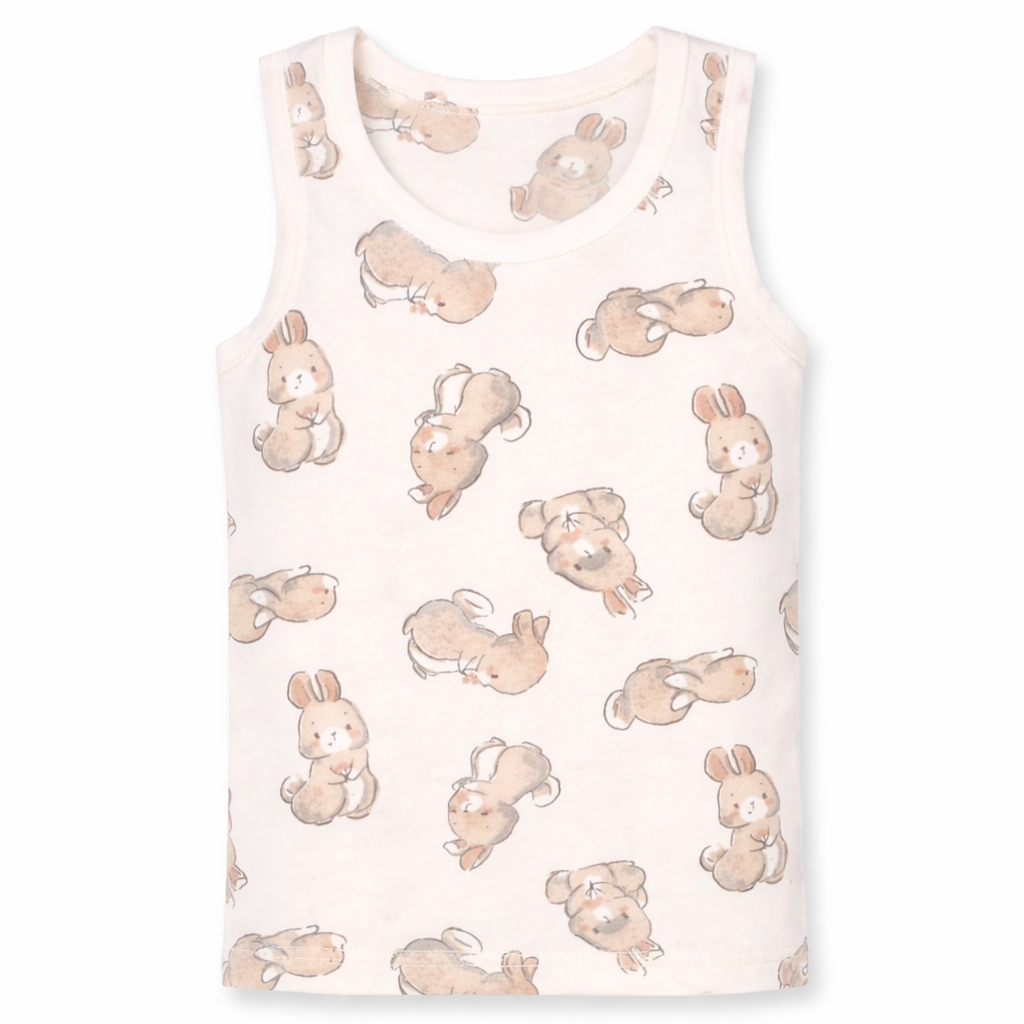 Дитяча майка для дівчинки, р.80-122 см, рібана, молочний з принтом