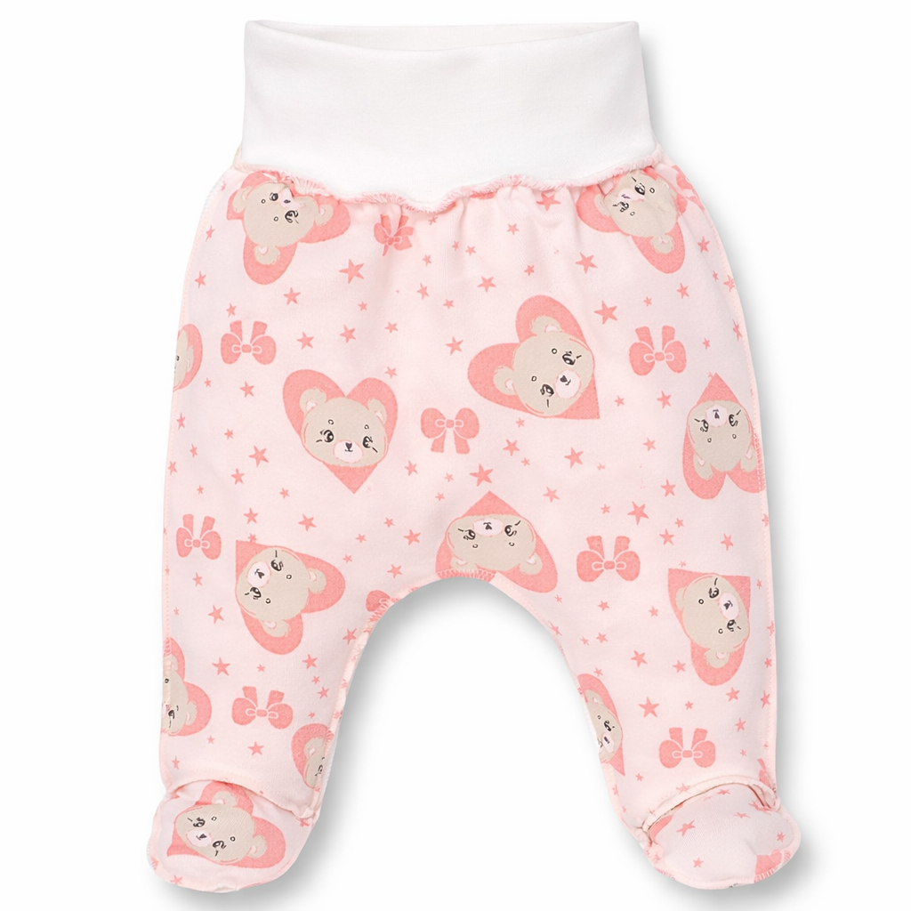 Повзунки на резинці для дівчинки, 56-62см, футер, рожеві з принтом