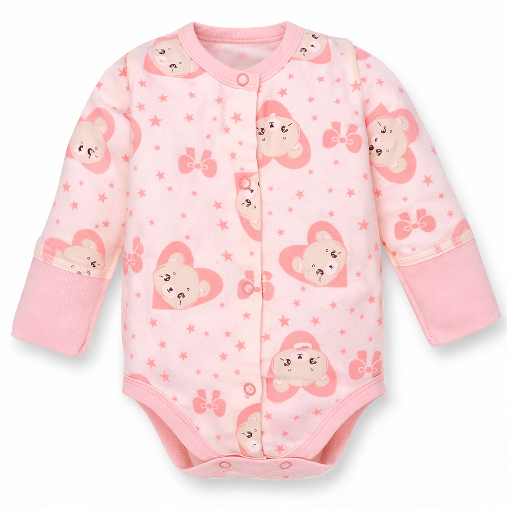 Боді для дівчинки, 56см, Футер 100% бавовна, рожева с принтом