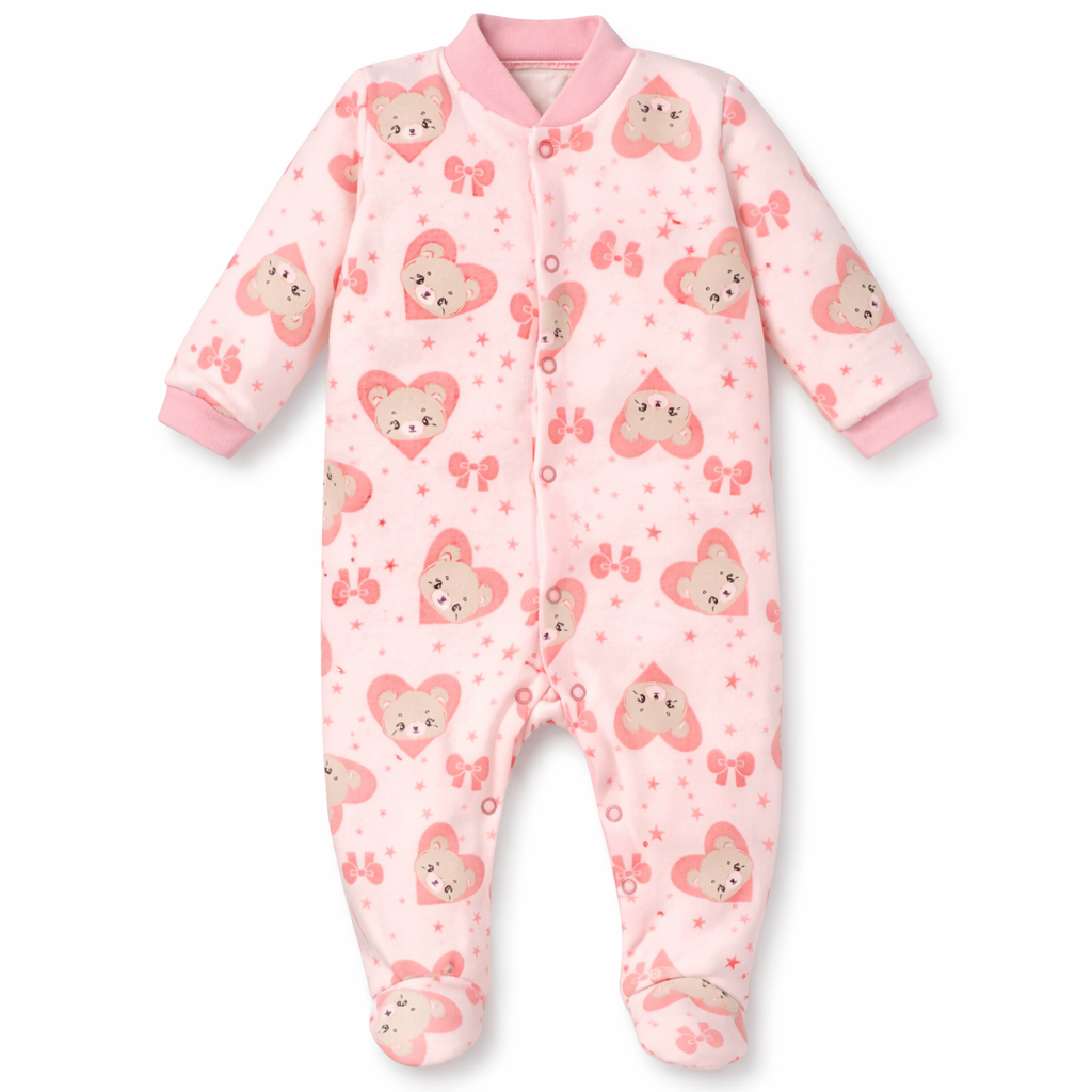 Дитячий комбінезон для дівчинки, р.62-74 см, футер з начісом, рожевий з принтом