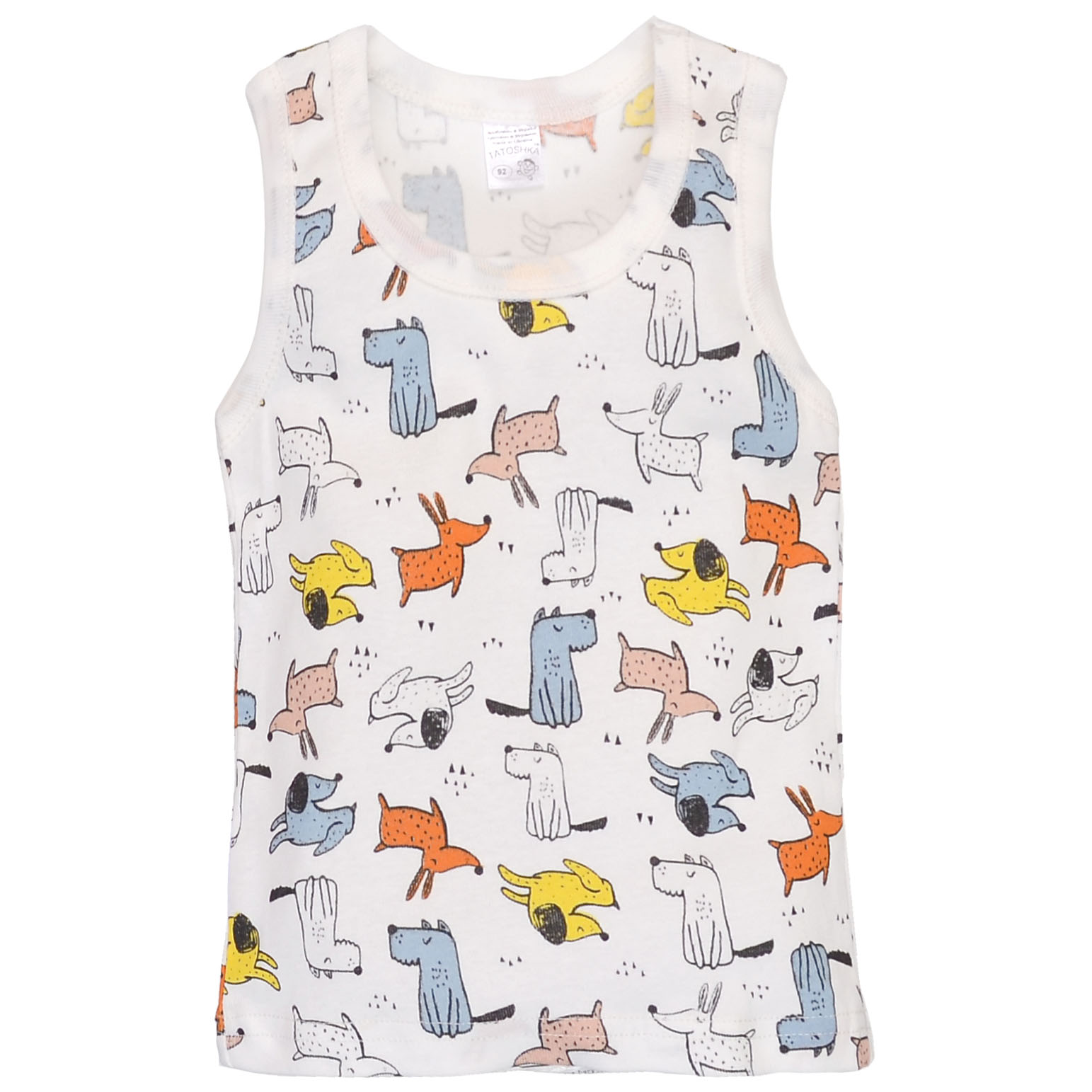Дитяча майка для хлопчика, р.80 -134 см, рібана, біла з принтом