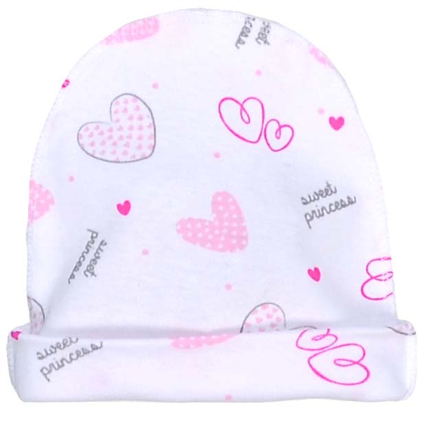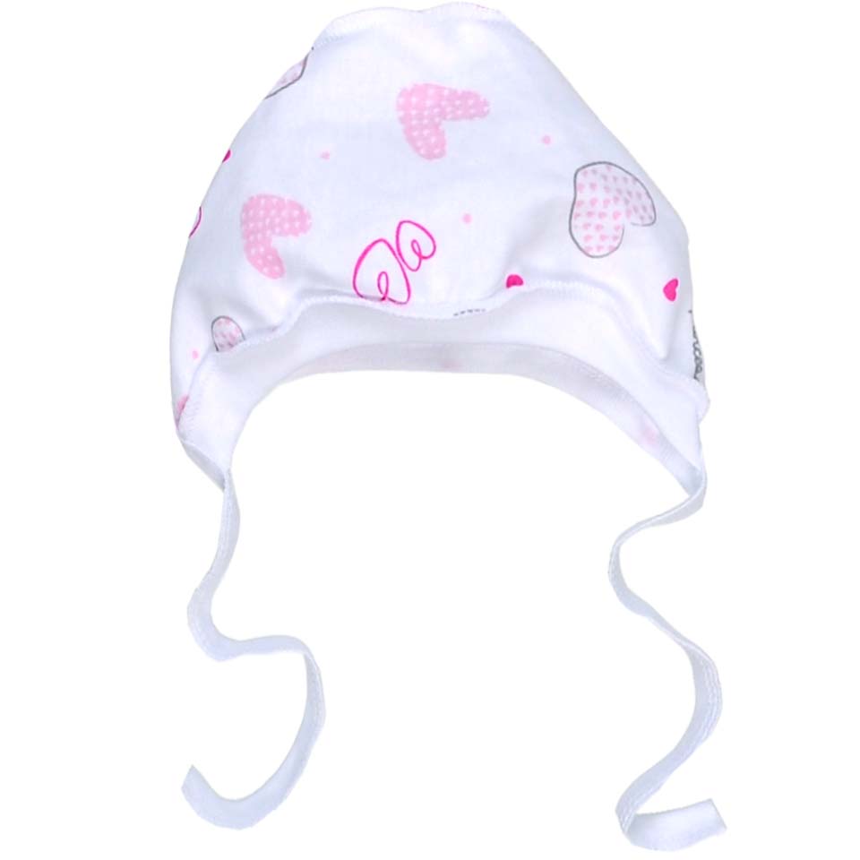 Дитячий чепчик для дівчинки, рібана, білий з принтом