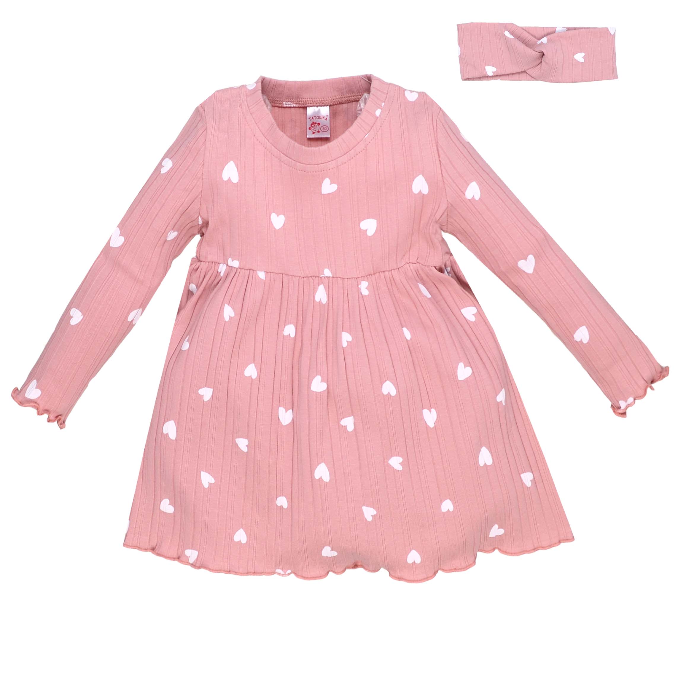 Дитяча сукня з пов'язкой, р.80-92 см, кашкорсе, рожевий з принтом
