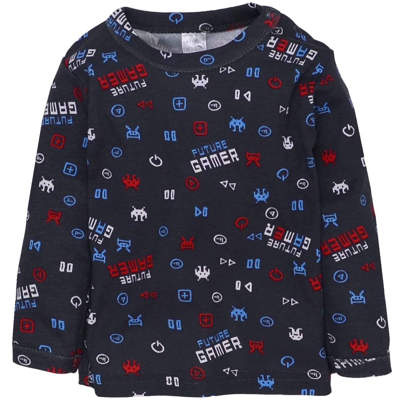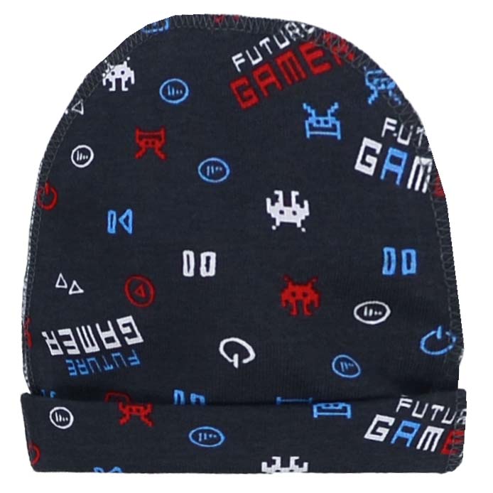Детская шапочка, р 36-38 г, рибана, синий с принтом