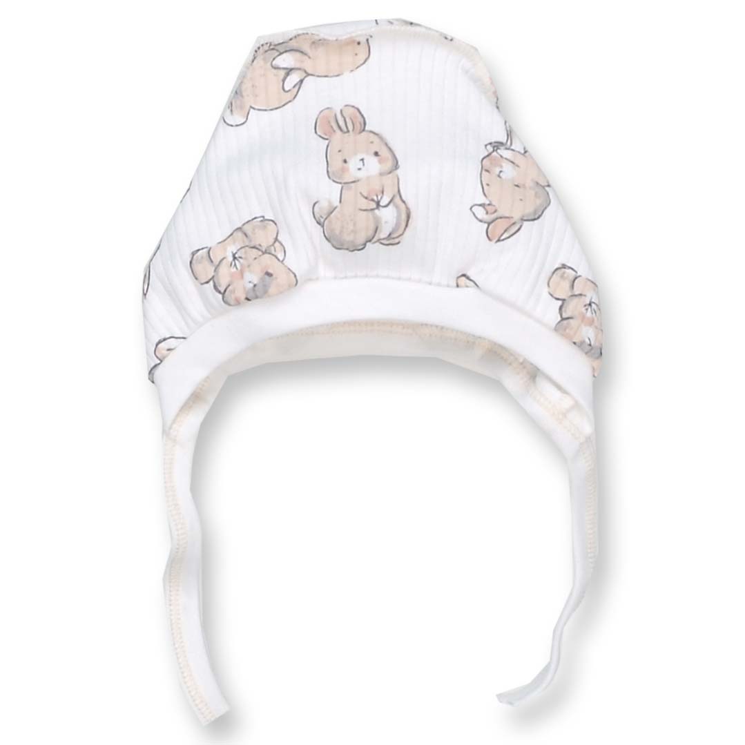 Детский чепчик уни, интерлок рапорт, молочный с принтом