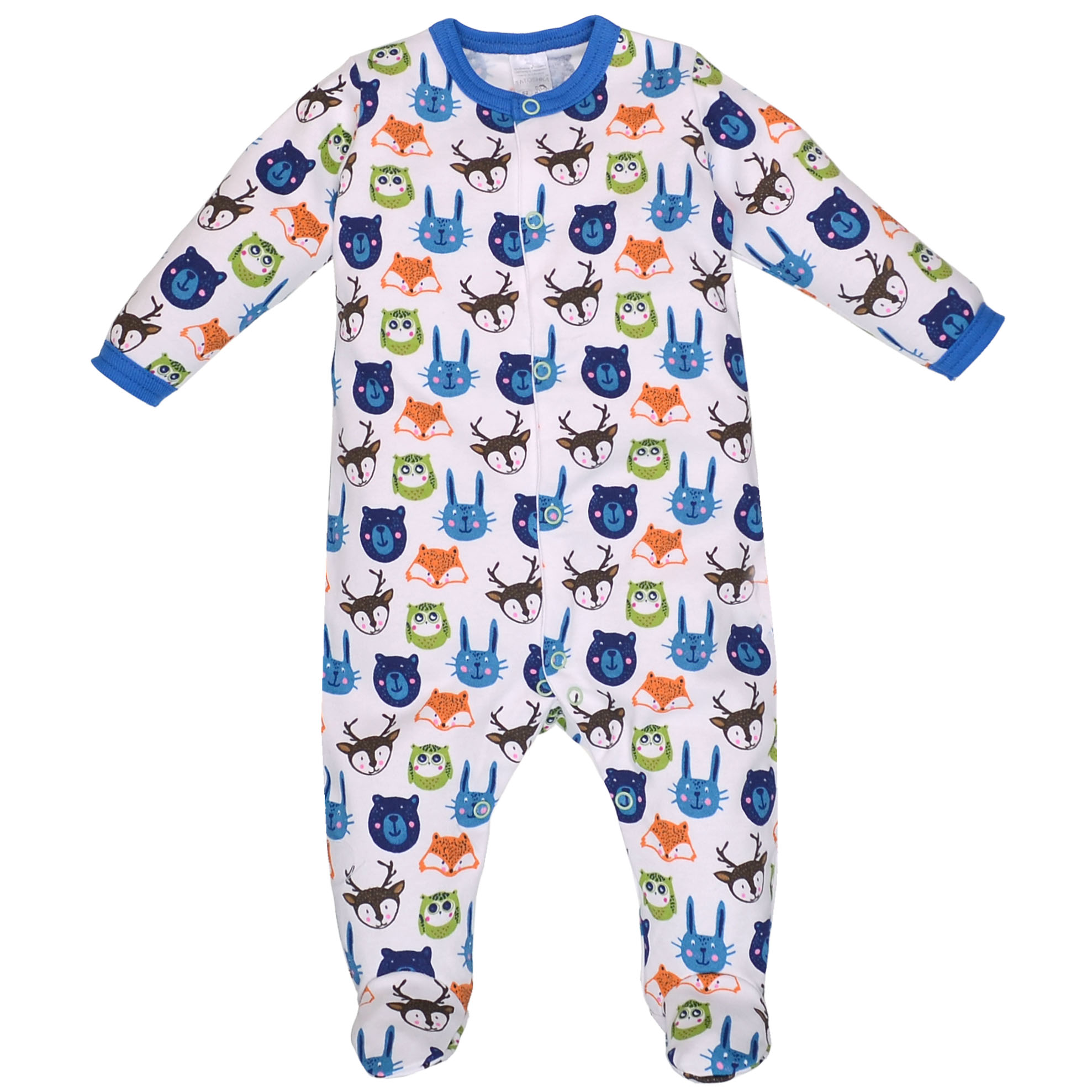 Детский комбинезон уни, р.50-56 см, интерлок, белый с принтом.