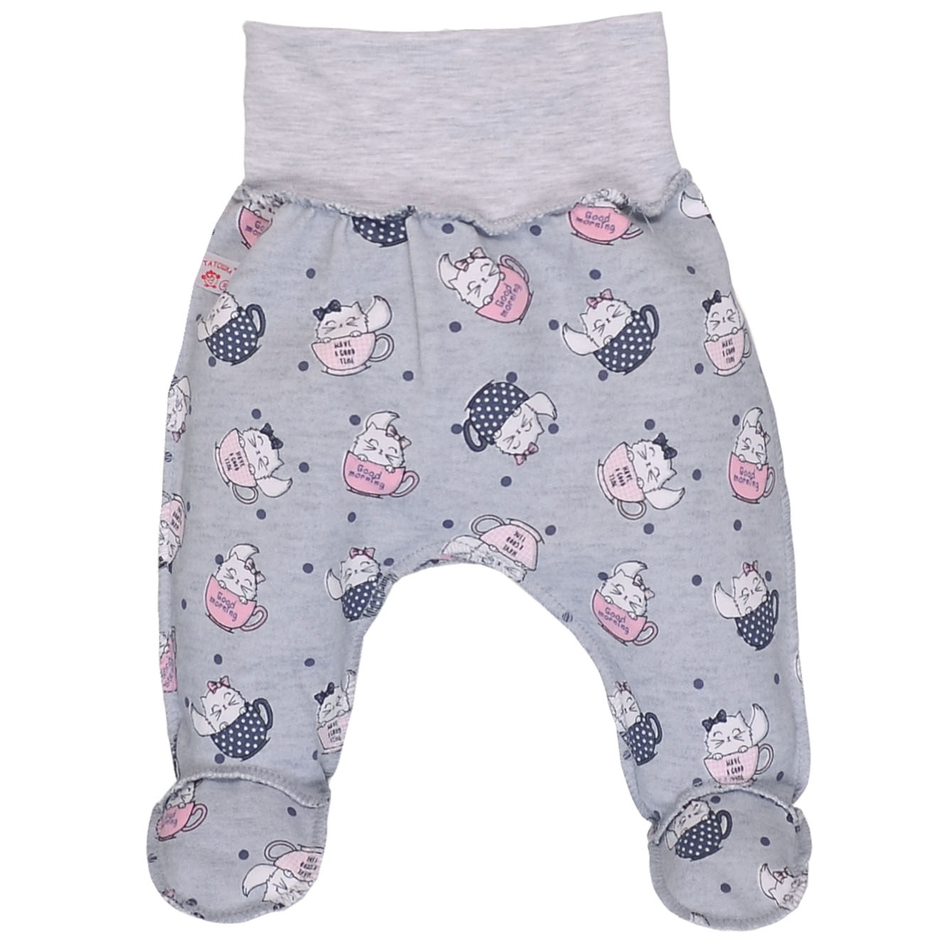 Ползунки на резинке для девочки, 50-68см, футер, серый с принтом