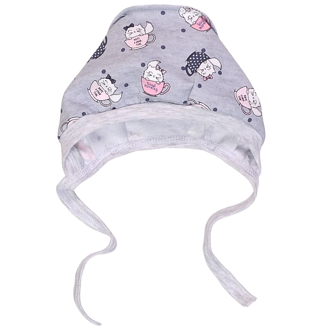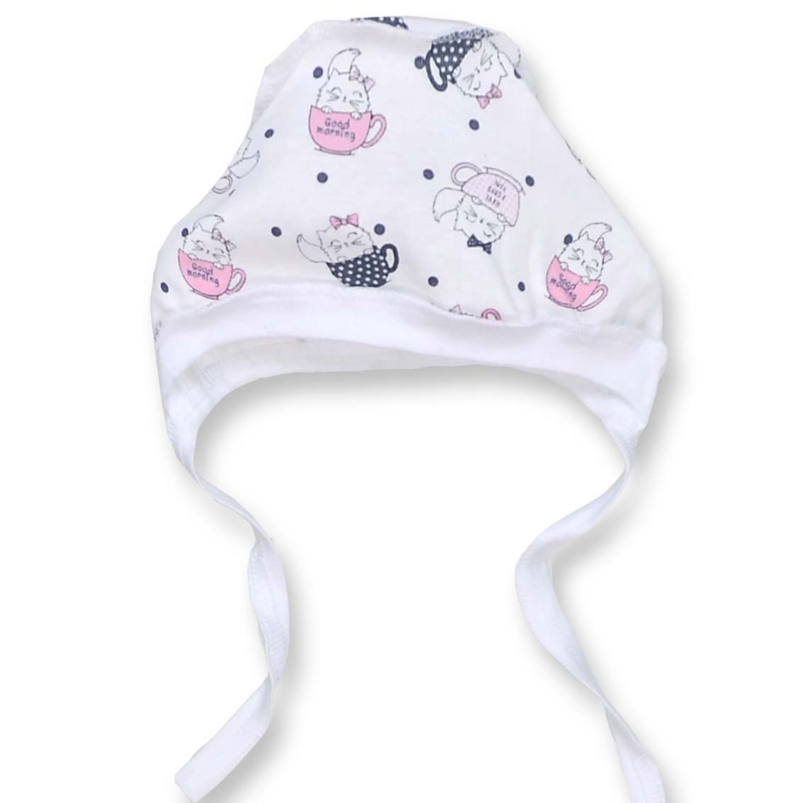 Детский чепчик для девочки, рибана, белый с принтом.
