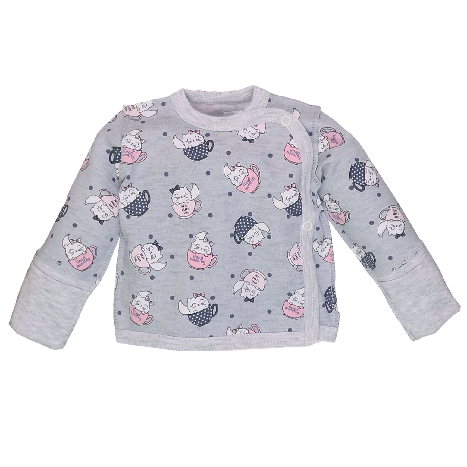 Распашонка для девочки, 50-62 см, футер 100% хлопок, серый с принтом